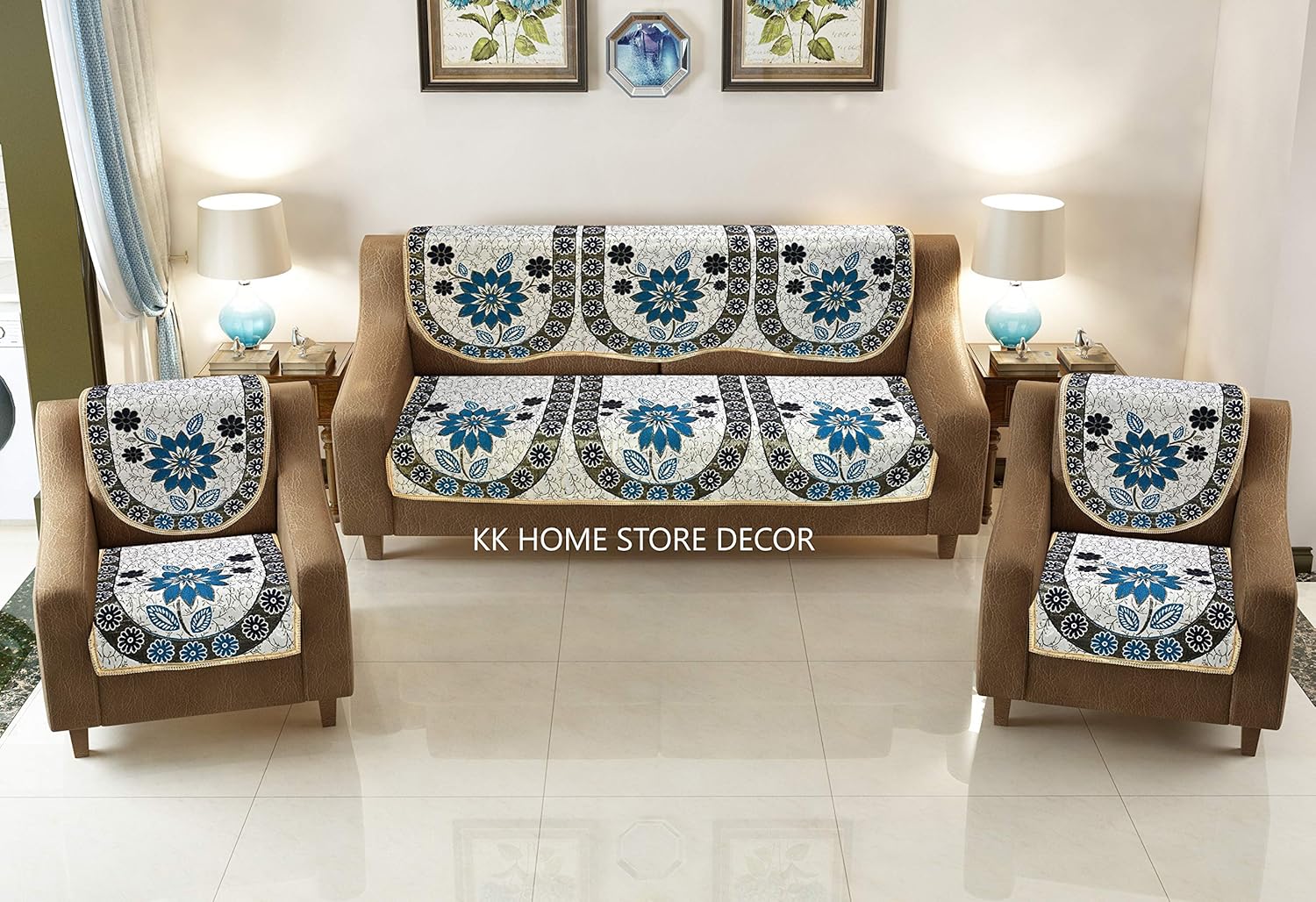 Buy Kk Home Store Decor Exclusive Royal Look Cotten Sofa Cover Set With Heavy Fabric 500 Tc Floral Design 5 Seater Sofa Cover Set Of 10 Piece Sky Blue Online At