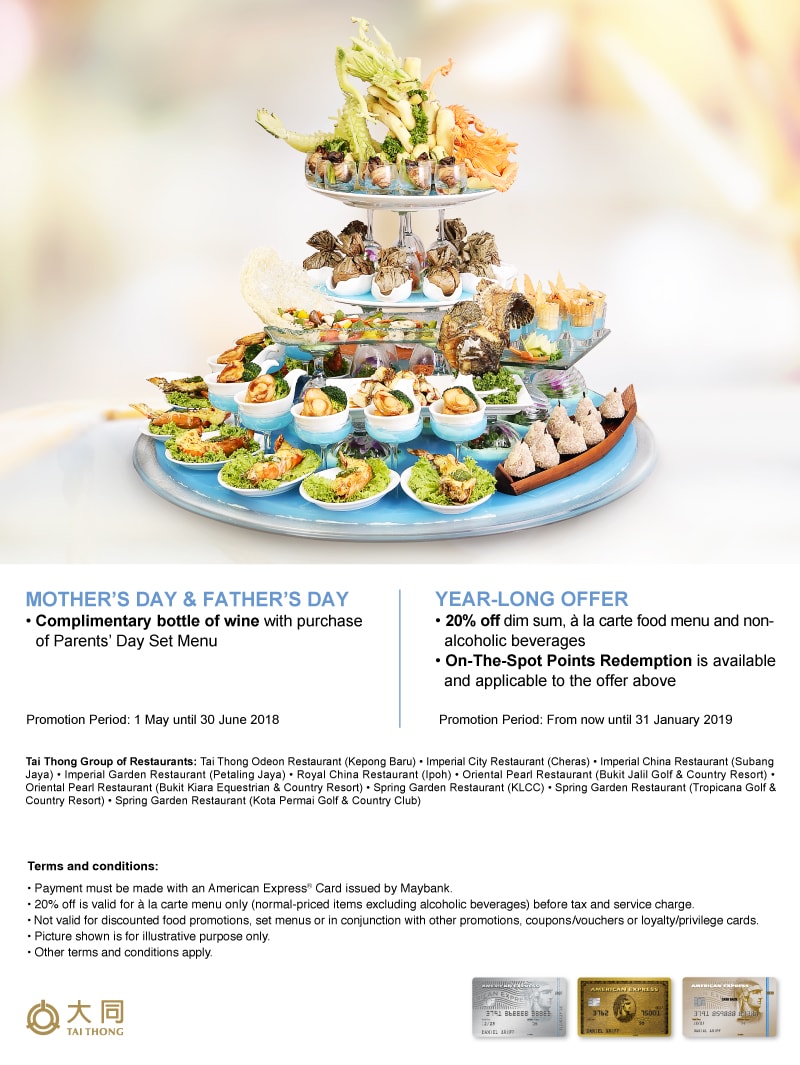 The dining deals are valid from 1 April 30 September 2018Below are some of the top restaurants and hotels in the list. Shop online with Maybank Visa Cards. Offer is not valid on eve of.