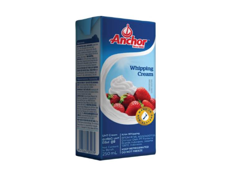 Naturally good Anchor Whipping Cream is made to keep a firm texture and consistency versus regular cream. Contains minimum 35 Milk fat. Contains Milk and Dairy products.
