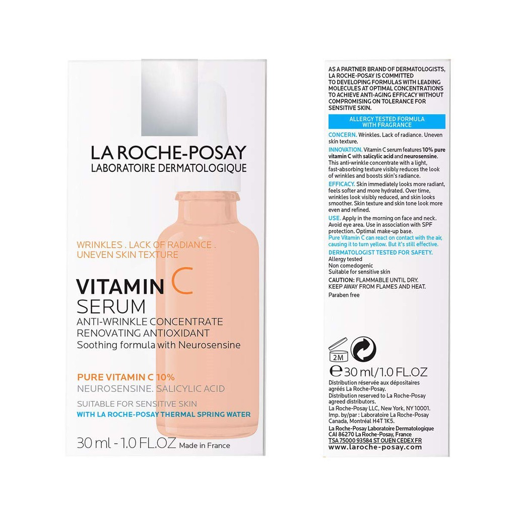 Featuring a rich creamy texure this vitamin C serum leaves skin feeling softer more hydrated. This La Roche-Posay Vitamin C serum is formulated with 10 Pure Vitamin C Salicylic Acid and Neurosensine. Our mission a better life for sensitive skin.