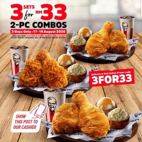 Kfc Last Day To Enjoy 3 X 2 Pc Combos For Rm33 With Kfc Facebook