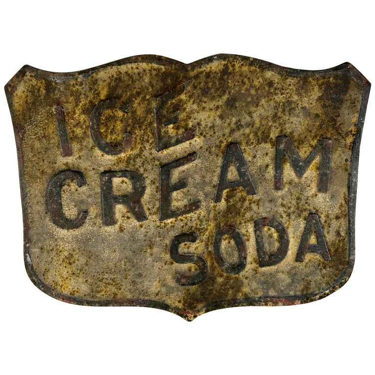 Antique Metal Ice Cream Soda Sign Untouched Surface Circa 1960s For Sale At 1stdibs