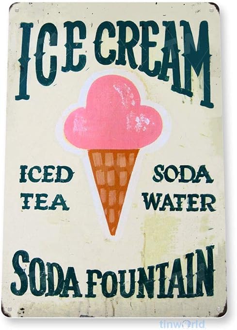 Tinworld Tin Sign Ice Cream Soda Metal Sign Decor Kitchen Cottage Parlor Candy Store A095. Measures 26 x 195 x 14. Ice Cream Sign Vintage Diner Decor Retro Signs Wall Art Tin Decorations Plaque Restaurant Food Grill Gift 6 x 18 High Gloss Metal 206180068017.